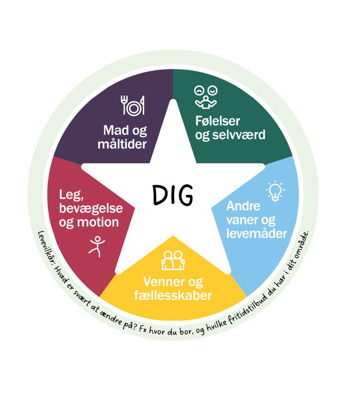 Sundhed kan være mange ting. Med Sundhedsstjernen har du en model, som du kan bruge i din undervisning, når du skal vise dine elever, hvad der kan påvirke deres sundhed. Modellen favner det brede og positive sundhedsbegreb, og den kan gøre det lettere for dine elever at forstår det brede sundhedsbegreb og de faktorer, der har indflydelse på vores sundhed.
