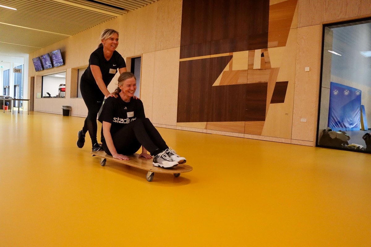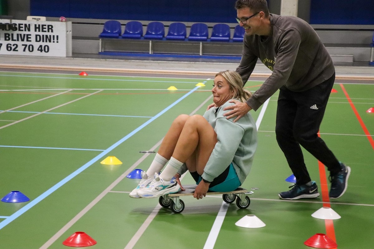 I hal B drønede 18 idrætslærere rundt på møbelhunde. De der små træplader med fire hjul, som man normalvis transporterer uhåndterbare ting på ved flytninger. I dagens anledning var der dog hverken tale om flytninger eller skøre lege til en polterabend, men derimod om workshoppen ”Hestekræfter på skoleskemaet”.