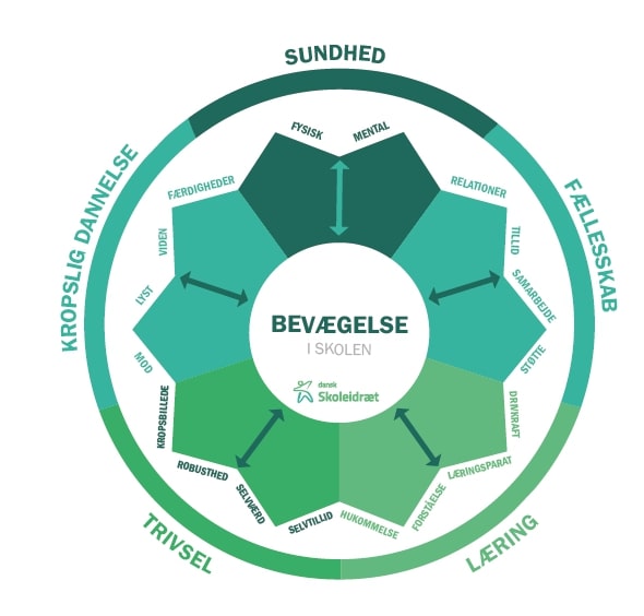 Du finder et overblik i Dansk Skoleidræts opsamlingsmodel. Her illustreres bevægelsens potentialer og elevernes udbytte. Alt sammen baseret på Dansk Skoleidræts 9 faktaark, der samler op på nyeste forskning.